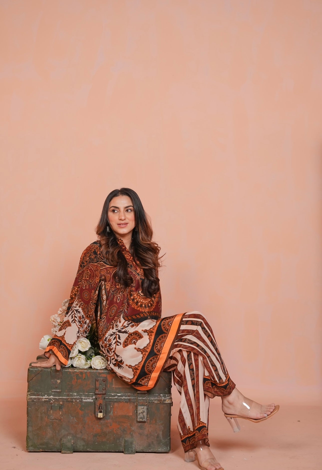Elevate your style with our Maroon Mughal Print Coord Set, a perfect blend of traditional elegance and modern flair. This set features an exquisite Mughal-inspired print in rich maroon tones, adding a regal touch to your wardrobe. The top is tailored for a flattering fit, while the coordinating bottoms ensure comfort and sophistication. Ideal for both casual outings and special occasions, this set offers versatility and timeless appeal.